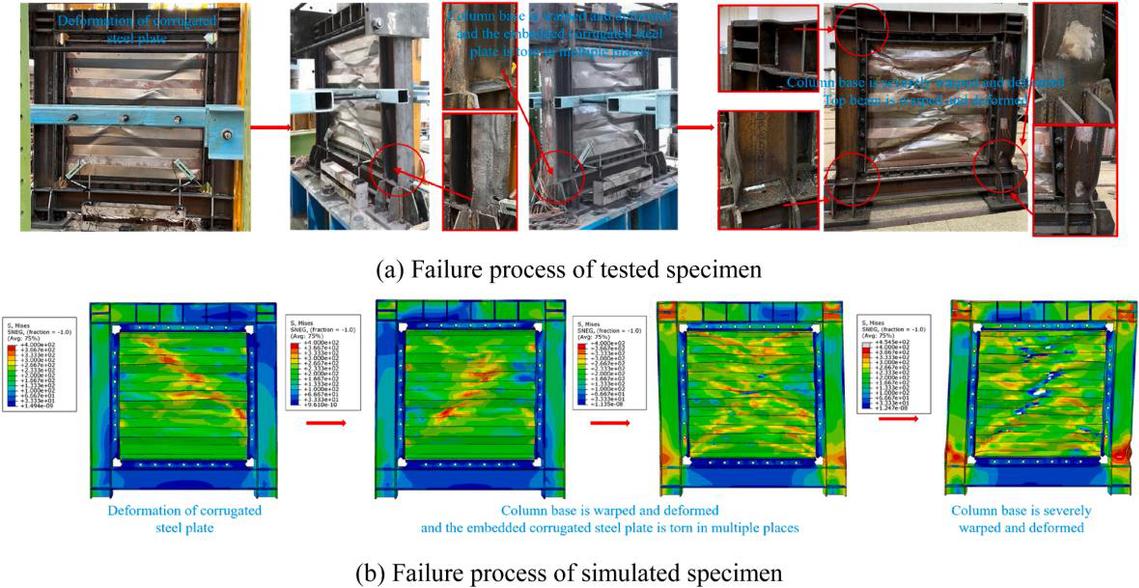 本研究通过低周往复加载试验与精细化有限元模拟相结合的方法,系统研究了H型钢框架波纹钢板剪力墙(HCSW)的滞回性能,其中内嵌波纹钢板采用波纹方向水平布置形式。研究以波纹钢板的单元波长和波高作为关键设计变量,深入探讨了不同几何尺寸对结构整体与局部性能的影响。试验与模拟结果系统揭示了钢框架与波纹墙板之间的协同工作机制、内力传递路径以及能量耗散模式。研究表明,波纹几何参数的变化显著影响墙板的屈曲模态、面外变形发展以及抗剪承载力发挥机制。在低周往复荷载作用下,波纹钢板通过面外屈曲变形有效耗能,钢框架则主要提供抗弯与抗倾覆能力,二者通过连接界面的相互作用实现了良好的变形协调。分析表明,合理的波纹几何设计能在延缓墙板过早局部屈曲的同时,确保整体结构具有稳定的滞回特性和优越的延性性能。该研究为可拆卸更换的波纹钢板剪力墙设计提供了关键参数依据,对推动可恢复功能结构的发展具有重要意义。