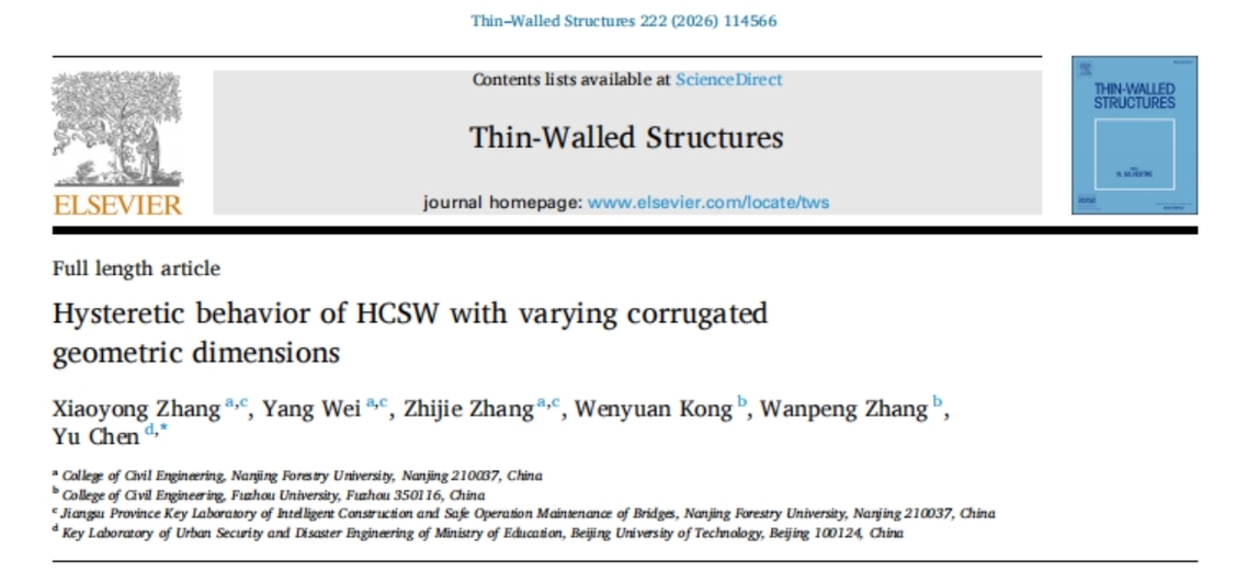 近日,港澳彩 张晓勇老师在结构工程领域国际权威期刊《Thin-Walled Structures》上发表了研究成果(Hysteretic behavior of HCSW with varying corrugated geometric dimensions)。张晓勇老师为第一作者,北京工业大学陈誉教授为通讯作者,我校为第一完成单位。